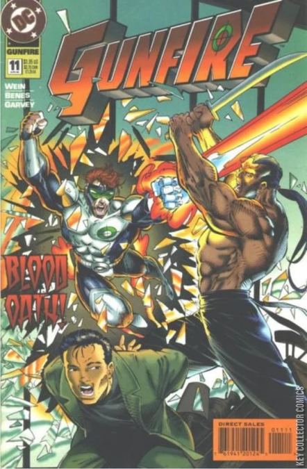 Home / DC / Gunfire / Gunfire #11 DC Released April 1995 Gunfire #11 Add to Collection Want It Synopsis Blood Oath Issue 12 of 14 Add to Collection Buy it on eBay Buy on eBay Low $1 Mid $2 High $3 Synopsis Blood Oath Details Series Gunfire Cover Date April 1995 Pages 28 UPC 76194120124501111 Cover Price $1.95 Final Order Cutoff N/A Creators Writer Len Wein Price Guide Log in or subscribe to access detailed graded price information and market insights. Log In Subscribe