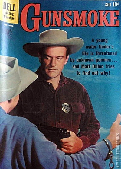 Home / Dell / Gunsmoke / Gunsmoke #24 Dell Released January 1961 Gunsmoke #24 Add to Collection Want It Synopsis No synopsis available. Issue 19 of 22 Add to Collection Buy it on eBay Buy on eBay Low $5 Mid $18 High $60 Synopsis No synopsis available. Details Series Gunsmoke Cover Date January 1961 Pages 36 UPC N/A Cover Price $0.10 Final Order Cutoff N/A Creators No creators listed. Price Guide Log in or subscribe to access detailed graded price information and market insights. Log In Subscribe