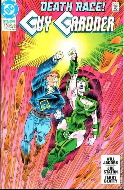 Part 2 of a 2-part story. It's Guy vs. the Gardners of the Universe (yes, Gardners!) and Green Lantern Boodikka! Only Guy can see the invisible aliens controlling his foes, making him the only one who can stop their rampage.