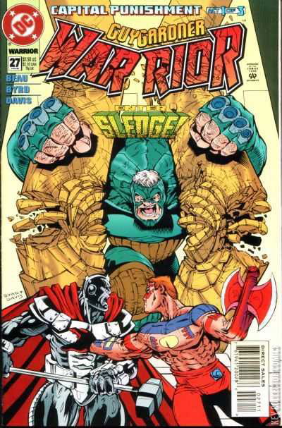 Part 1 of the 3-part 'Capital Punishment,' guest-starring Steel. Guy Gardner teams with John Henry Irons when Warrior arrives in Washington, D.C. to rescue his brother from the Quorum. But the Quorum has activated Sledge, a super-soldier from the past with orders to kill. Plus, Superman makes a cameo appearance. Continues next issue, then concludes in Green Lantern (1990 2nd Series) #60. Plus, the alien signal sent out in Justice League America (1987) #95 is received.Under D.C. sleeps the monstrous being known as Sledge. Until now. Sledge is defeated when the Washington Monument falls on his head.
