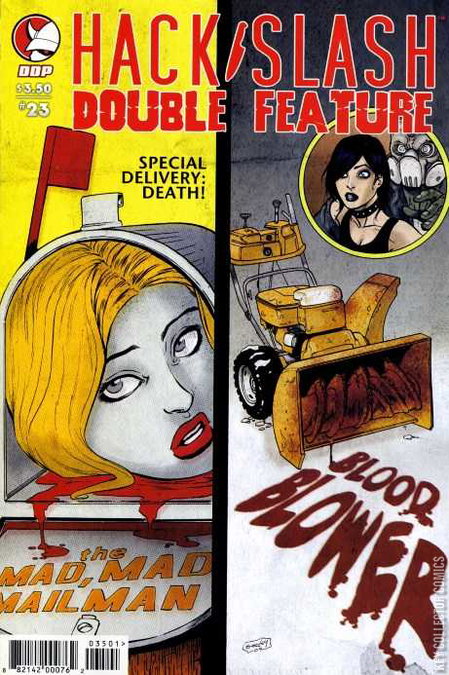 Meet Cat Curio, intrepid investigator and babysitter as she investigates the strange case of The Mad Mad Mailman, and stumbles upon the trail of the ominous BLACK LAMP SOCIETY! And, in the present, Cassie, Vlad and Lisa chase a pet-pureeing snow blower through the horrors of rural Michigan in BLOOD BLOWER! It's a HACK/SLASH DOUBLE FEATURE! TWO tales of blood and terror, one set in the past and one in the present!