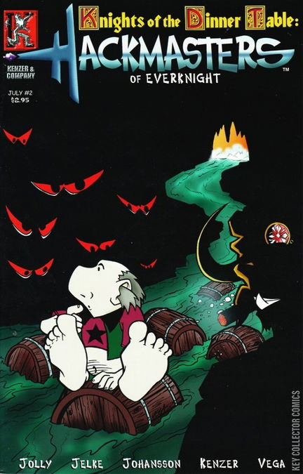 A group of unlikely heroes finds themselves bound together, not by honor or loyalty, but by a magic spell that forces them to team up so that the Key of Grawdyng doesn't fall into the wrong hands. Also featuring a Knights of the Dinner Table back-up story. Orc, the Other White Meat; First Taste of Magic.