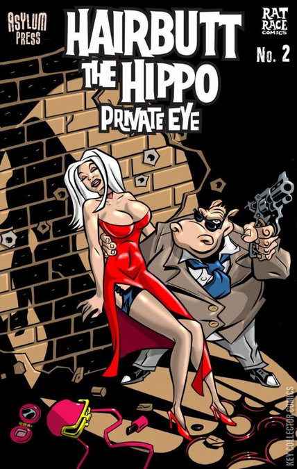 Hairbutt the Hippo stars an anthropomorphic hippopotamus named Hairbutt, who works as a private detective. This issue tells two tales of crime noir fiction "Waiting for The Man" and "As Crime Goes By". Brought to you by the decidedly-twisted good folks at Rat Race Comix comes the thundering saga of a Down Under private dick who does not go gently into that good night. You know him, you love him! Yes, it's HAIRBUTT THE HIPPO, he of the nasty temperament and even nastier personal grooming habits. Like one of the covers boasts, "Uncut! Uncensored! Unashamed! Unhygenic!"