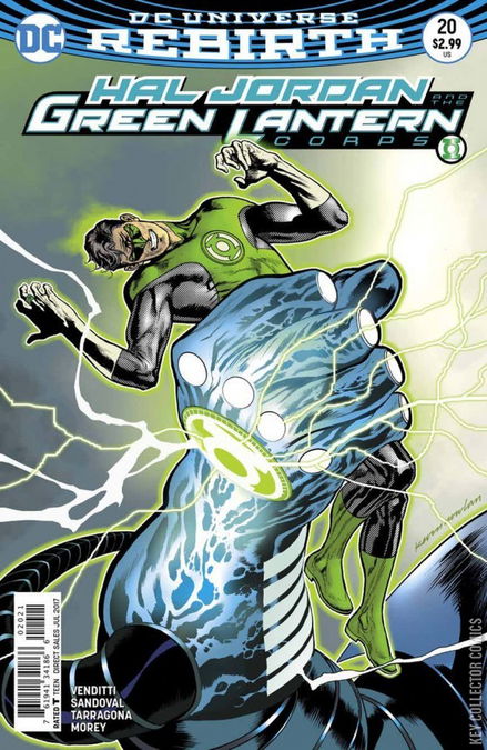THE PRISM OF TIME, PART THREE: DOGFIGHT As a final confrontation between the prism beasts of Sarko and the remaining Green Lanterns comes to a head on Mogo, the Corps tries to hold their ground as Hal Jordan embarks on a stealth mission to the planet where he forged his Green Lantern ring! But what he finds there brings Hal back to past decisions he’ll now regret.