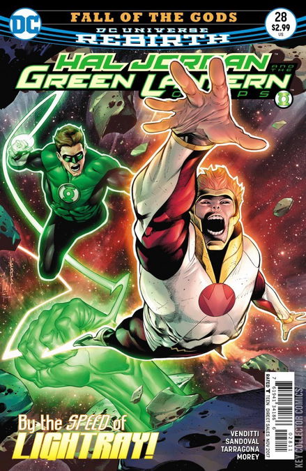FALL OF THE GODS, PART THREE: GODSPEED Hal Jordan races through the cosmos hunting the speedster of the New Gods, Lightray! Hal must secure Highfather if the Green Lantern Corps' plan to protect him and the universe has a chance of survival! Can the greatest pilot in the universe chase down a god who moves at the speed of light?