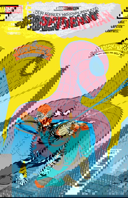 PREQUEL TO THE ALL-NEW ANIMATED SERIES! In Marvel Animation's new series, we find Peter Parker still finding his footing on his journey to becoming the Spider-Man we all know and love! In this series, you can take the very first steps along with him as he discovers his powers, decides to become a hero, and even picks out his name and costume! Now Peter's gotta survive an entire Freshman year as a newbie crime-fighting vigilante…and if you think you know how this story goes, you are in for a surprise! REPRINTING YOUR FRIENDLY NEIGHBORHOOD SPIDER-MAN #1