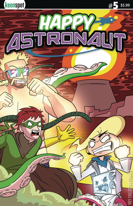 Super: The Star Wizard, Captain Dook, Orion, Ptoophagus, Sirius, and even that mustachioed scorpion fella, all show up on Planet Esveep, right where our adventure began, ready for a magic-sapping, planet-demolishing war! The only thing standing in their way is Happy, Half, Barry and a whole army of Starlings! Join us for the thrilling conclusion to the opening arc of Happy Astronaut!