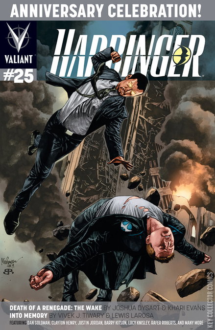 Toyo Harada’s last stand! The future of Harbinger starts here with a star-studded, 48-page anniversary milestone – packed with brand new contributions from an all-star cast of creators and shocking new revelations about the fate of Valiant’s teenage superteam! A Renegade has fallen and, now, there is no turning back. Stripped of his allies and all sense of self-preservation, the world’s most powerful “harbinger,” super-powered billionaire Toyo Harada, is about to inflict a terrible reckoning on a world he thought he could control…and everything we thought we knew will be forever changed in its wake. Original series creators Joshua Dysart and Khari Evans reunite to deliver a devastating climax to the second year of the series that The Onion/A.V. Club calls “the crown jewel of Valiant’s lineup” – and officiates the “Death of a Renegade” with all-new artwork and stories from an incredible roster of award-winning talents, including Dan Goldman (Red Light Properties), Justin Jordan (The Strange Talent of Luther Strode), Barry Kitson (Empire), Lucy Knisley (Relish: My Life in the Kitchen), Andrew Pepoy (Fables), Rafer Roberts (Carpool Buddies of Doom), Riley Rossmo (Drumhellar), Ron Wimberly (Prince of Cats), and more!