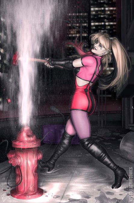 ATTENTION RESIDENTS OF THROATCUTTER HILL! Art! Since the dawn of humanity, we have found emotional, spiritual, and even intellectual meaning through the visual arts. But sometimes...even art can suck real, real bad. Is a soulless and aesthetically meritless corporate statue ruining your view of a perfectly good park full of uncollected trash and dead rats? That's where I come in--Hello, I'm Harley Quinn. Recently, I launched my latest business venture, the Harley Quinn Destructive Agency. My goal is simple: if there's something you need blown up, if you need somebody clobbered, if there's anything I can do to make Throatcutter Hill a more dangerous place again--I'll do it. My rates are reasonable! And for an introductory price of $3.99 you can witness me beat the crud out of a corpo superhero! You'll laugh, you'll cry, you'll slap your thigh! So what are you waiting for? Call your local comics store, and be sure to order a copy of Harley Quinn #45 today!