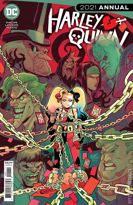 THIS SHADOW THAT HANGS Kevin here! You know, Harley’s sidekick, and your favorite new character? I know Harley usually does these solicits, but she’s a little tied up at the moment. Like, literally. See, there’s a new villain in Gotham calling himself Keepsake, and you know how Gotham villains are: definite psychological issues. So Keepsake kidnapped Harley, while trying to convince her to be his partner and help take over the city. Now, I don’t mean to imply that Harley’s not capable all on her own, but this time she needs a little help. Which means I’m teaming up with Solomon Grundy so we can visit Gotham’s worst criminals and figure out where Harley might be. Plus, a major new Bat-villain!