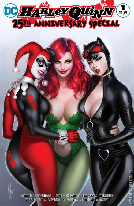 In a story written by Amanda Conner and Jimmy Palmiotti, with art by Conner, learn what really happened when Harley, Catwoman, and Poison Ivy hit Vegas! Then, a tale written by Paul Dini with art by Chad Hardin takes us back to Harley's days with the Joker to see the hell he unleashes when he makes the mistake of scheduling the biggest heist of their career on Harley's birthday! Plus, writer Chip Zdarsky and artist Joe Quinones pit Harley and the Joker against Batman and Robin -- but while you might think the Joker knows how to play with Batman's mind, it's nothing compared to Harley's ability to crack Robin's psyche! And that's not all! Writer Dale Kibblesmith with art by David LaFuente put Coney Island right in the path of a hurricane -- and put Harley on a collision course with Swamp Thing, of all people... monsters... things...? This issue also includes Harley pin-up pages with art by Babs Tarr, Bengal, Dustin Nguyen and more!