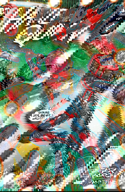TASK FORCE XX, CHAPTER 2 Clown’s log, stardate 2022. Our mission is going perfectly, as long as you ignore that missile that the U.S. military launched at our spacecraft; the mysterious, unknown creature running wild on the JLA moon base; and Solomon Grundy losing his lunch all over Bronze Tiger. So, other than all that…things are great! So, hey, this Harley Quinn event sure is rocketing forward! Space puns, dead ahead!
