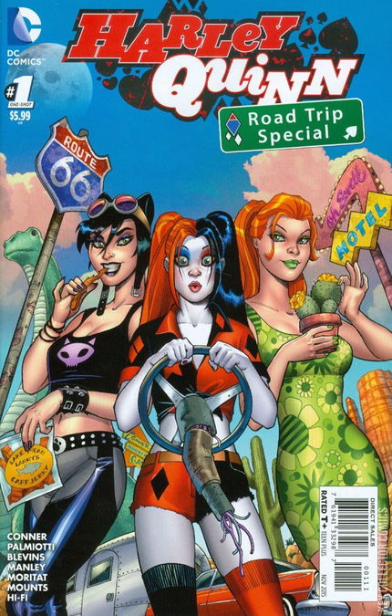 ROAD TRIPPY It's the great American summer tradition, but you've never seen a road trip quite like this before! Harley, Ivy, and Catwoman are burning rubber across the U.S. of A! We recommend you all stay off the roads for the month of August, just to be safe.