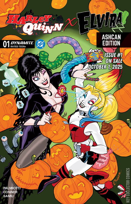 THE MISTRESS OF THE DARK MEETS DADDY'S LITTLE MONSTER! What happens when the Clown Princess of Crime gets bored? Shenanigans, hijinks, grievous bodily harm... the possibilities are endless! Now add in a certain macabre-minded TV host who seems to attract trouble like crypts attract vampires, and the stage is set for the greatest team-up since Frankenstein met his Bride! With her beloved show on the chopping block following a corporate takeover, Elvira needs to come up with a plan to get things back in the black - and her new friend Harley Quinn has an idea that's just crazy enough to work! Together, they're going to throw the greatest Halloween party Brooklyn has ever seen - whether the borough likes it or not!