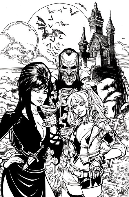 OUT OF THE FRYING PAN AND INTO THE FIRE! With things getting too hot to handle back in Brooklyn, Elvira and Harley abscond to the cooler climes of Transylvania to crash with one of Elvira’s best buddies in his tastefully appointed castle. But despite their reputation as old-school hedonists, the Count’s already-invited guests don’t much care for this pair of interlopers — and they’ve got some decidedly medieval ideas for how to deal with party crashers!Harley fan club co-founders AMANDA CONNER and JIMMY PALMIOTTI go continental in Harley Quinn X Elvira #4, with Conner once again serving up double helpings of steaming-hot covers (as well as adding flavor to JUAN SAMU’s tasty interior art) along with JOSEPH MICHAEL LINSNER, CHAD HARDIN, BEN CALDWELL, and a special MYSTERY BLIND BAG featuring exclusive variants! Please Note: The number of Blind Bags is limited, and allocations may occur.