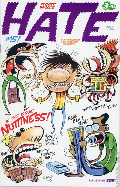 Hate #15 takes its readers to the threshhold of strange and major changes in Peter Bagge's hit series, when the whole cast of characters - Val, Stinky, Lisa, even the paranoid George Hamilton III - home in on Buddy Bradley's quiet bachelor pad, move in, and proceed to make his life a living hell! Nuttiness and suffering are the sure results for all involved, as Bagge paves the way for a triple-shock ending which may just take Buddy and his fevered readers into a new dimension of fear, loathing, and... Hate!