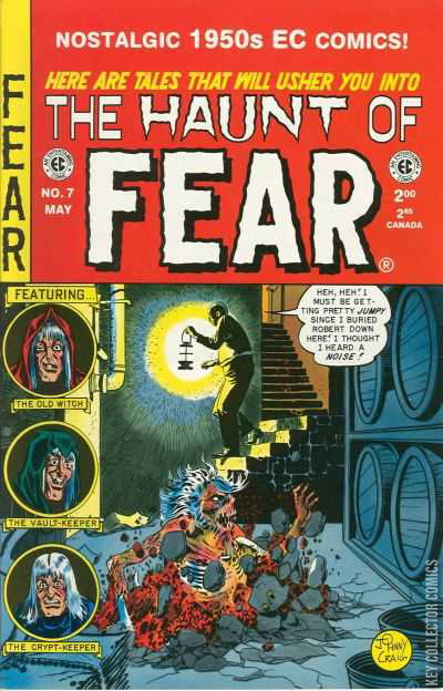 1. Room for One More! (hosted by The Old Witch / written by Albert B. Feldstein : reprinted from: Haunt of Fear (EC, 1950) #7) 2. The Basket! (hosted by The Crypt Keeper / written by Albert B. Feldstein : reprinted from: Haunt of Fear (EC, 1950) #7) 3. Horror in the School Room (hosted by The Old Witch / written by Albert B. Feldstein : reprinted from: Haunt of Fear (EC, 1950) #7) 4. Howling Banshee! (hosted by The Crypt Keeper / by Johnny Craig : reprinted from: Haunt of Fear (EC, 1950) #7)