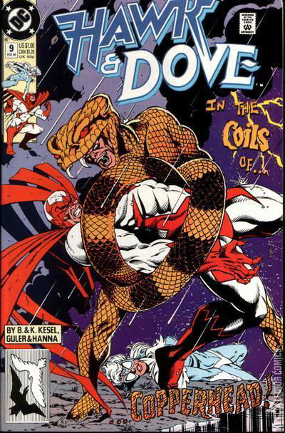 Batman's old foe Copperhead slithers into town and is putting the squeeze on one of Hawk and Dove's friends.