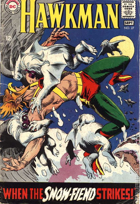 Hawkman and Hawkgirl prevent the Leopard Gang from robbing the Midway City penthouse of Prince Sabul of Tala, who tells them how his country was attacked by Yeti. He is also afraid that they may have to accept military assistance from outside to handle the problem, and that this could lead to occupation. Hawkman agrees to help, although he insists that Shayera stay behind. He is attacked by a Yeti upon arrival, and Hawkgirl, monitoring him from their ship, flies to his aid, as he is taken in by Colo, the last of the true Yeti, who explains that the others are not of his race. The couple tracks the false Yeti to a cave filled with foreign soldiers, and this leads to Sabul's throne room. Hawkman now suspects Sabul has lied to them and that he is the leader of the flying Yeti, but Sabul gathers his people to allow the hero to indict him publicly, an action which backfires when they don't believe him. Hawkgirl disproves the theory when she hears General Kin-Yo's plan to assassinate Sabul and his cabinet with the Yeti, and the attack of the Snow-Fiend reveals it as a robot, guided by Sabul's cousin Vana. General Kin-Yo is killed in attempting to blow up a dam, which would have flooded Tala, as Colo stops him, and Hawkman in turn rescues Colo.