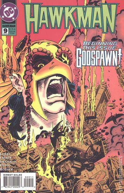 Part 1 of the 5-part 'Godspawn.' While Hawkman battles the metahuman survivors of Chicago's Netherworld, Katar Hol's mother sends an angry and puzzled Hawkwoman away for some cryptic reason. Meanwhile, the countdown to ZERO HOUR begins for Hawkman and Hawkwoman as, far from Earth, and ominous and destructive figure moves on a collision course for the Hawkworld Thanagar.