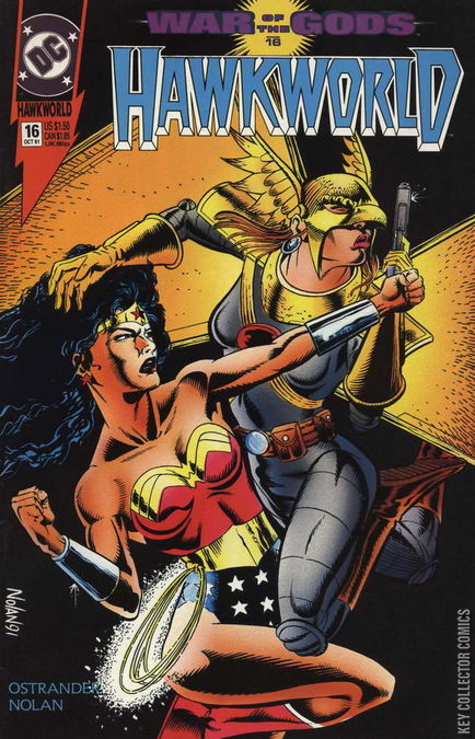 WAR OF THE GODS, PART 16 - BROTHERS AND SISTERS Continued from Batman #470 Wonder Woman is wanted by the law, and in Chicago, Hawkwoman is the law. Come hell or high water, Hawkwoman is not about to let anything stop her from bringing Princess Diana to justice - no matter the price. Continues in Animal Man #40