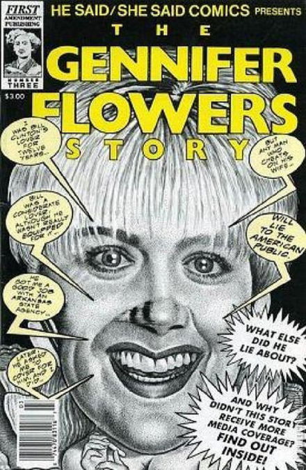 Flipbook. One side has the male viewpoint, the other side has the female view. Get Bill Clintons side of the story as he tries to defend himself about his relationship with Gennifer Flowers. The Gennifer Flowers Story by Charles Swinburne, Mark Morales, & Mike Apice. Cover by Drew Friedman. Learn about the affair Gennifer Flowers had with President Bill Clinton.