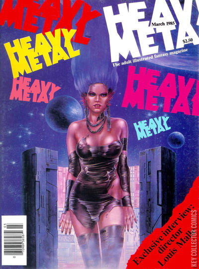 Vol. 8 No. 12 The adult illustrated fantasy magazine. Cover art by Luis Royo. The Hunting Party, script by Pierre Christin, art by Enki Bilal. Rebel, script by Pepe Moreno, Kenny Sylvester (co-script), Pete Ciccone (co-script), and Rob Hingley (co-script), art by Pepe Moreno. Bone Voyage starring El Borbah, script and art by Charles Burns. Rock Opera, script and art by Rod Kierkegaard, Jr. Meets the Toast of Europe starring Tex Arcana, script and art by John Findley. Interview with Louis Malle. An Author in Search of Six Characters, script and art by Milo Manara. The Walls of Samaris, script by Benoit Peeters, art by Francois Schuiten. The Stranger, script and art by Herikberto. Bourbon Thret: The Parochial Terror!, script by Um Stenstrum, Patricia Wong, and Geoffrey Darrow, art by Geoffrey Darrow. March, 1985, issue 96. 100 pgs. Cover price $2.50. Cover price $2.50.