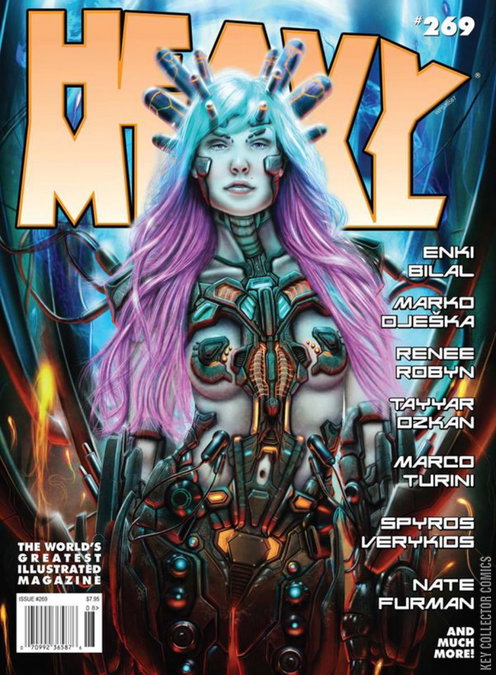 Kick the beginning of summer's ass with Heavy Metal! Featuring the next bloodcurdling chapter of Enki Bilal's 'ANIMAL'Z', the final installment of Marco Turini's dystopian epic 'E.V.A.' and much, much more! Things are heating up at Heavy Metal and the June issue is sure to get the summer rockin' and rollin' in style! Don't get burned, order yours now!