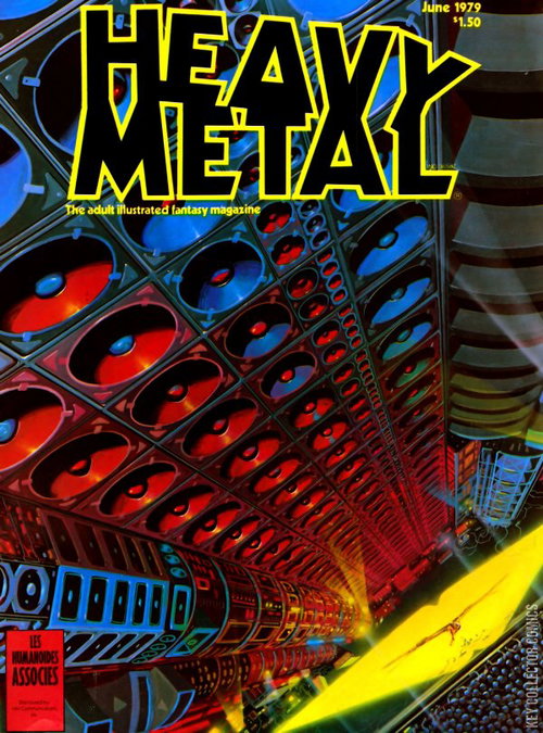 Angus McKie cover, Rich Corben and Walt Simonson art, plus 1 pg Wrightson June 1979, issue 27. Dubbed "The adult illustrated fantasy magazine," Heavy Metal also publishes tales of horror, science fiction, and adventure. This 27th issue includes the following stories: The New Tales of the Arabian Nights, Sinbad in the Land of Jinn by Richard Corben and Jan Strnad; Captain Future by Manoeuvre and Clerc; Pyloon by Rae Rue and Leo Giroux; Alien: The Illustrated Story by Walt Simonson and Archie Goodwin; An East Wind Coming by Arthur Byron Cover and Berni Wrightson; and So Beautiful So Dangerous by Angus McKie. Cover art by Angus McKie. Back cover by Marcus Boas. Cover price $1.50.