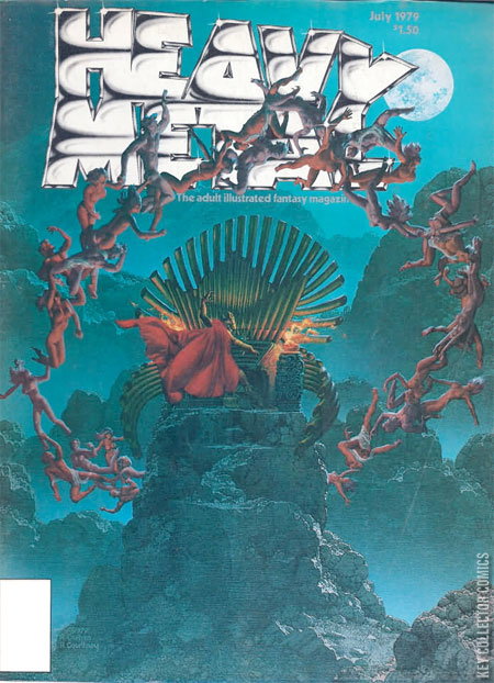 The adult illustrated fantasy magazine. Cover art by Richard Corben and Rick Courtney. The Last Voyage of Sinbad--New Tales of the Arabian Nights, script by Jan Strnad, art by Richard Corben. The Great Trap, script and art by Denis Sire. The Airtight Garage of Jerry Cornelius, script and art by Jean Giraud [as Moebius]. Stingaree featuring Eight Belles, script and art by Gray Morrow. Citizens Beware, script and art by Mark Fisher. ...Rears Its Ugly Green Head, script by Neal Adams, art by Michael Hinge. Zooks!, script and art by Vaughn Bode. Ecch! The Young Gnome text story, script by Nicholas V. Yermakov, art by Roger Stine. Shelter, script and art by Chantal Montellier. Telefield Chapter Five, script and art by Sergio Macedo. Attila the Frog, script and art by Don Lomax. Down Deep, script and art by Stuart Nezin. Starcrown text story, script by John Pocsik, art by Gil Kane and Bruce Jones Studio. Only Connect - Multiple Choice, script and art by Alias. July, 1979, issue 28. 100 pgs. Cover price $1.50. Cover price $1.50.
