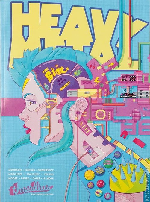 Continuing his run as Editor-In-Chief, Grant Morrison serves up another edgy story and a cast of world class writers and artists in this Sci-Fi themed issue. Grant Morrison teams up with artist Rian Hughes for a twister sure to entertain, Mozchops Salsa Invertebraxa continues to thrill and all behind covers designed by the winners of Heavy Metal and Threadless' Design Challenge to find the next great Heavy Metal cover artist!