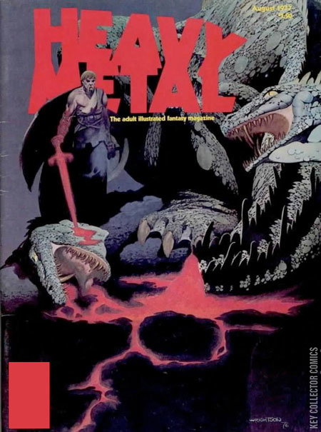 The adult illustrated fantasy magazine. Cover art by Bernie Wrightson. The Black Queen, script by Marcel Gotlib, art by Philippe Druillet. Den, script and art by Richard Corben. Fever, script and art by Halmos. Roger, script by Souchu, art by Locquet (sets, photography). Polonius, script by Picaret, art by Jacques Tardi. The Green Hand, script by Zha, art by Nicole Claveloux. Our Own Little Mardi Gras text story by Richard A. Lupoff, art by George Barr. The Long Tomorrow, script by Dan O'Bannon, art by Jean Giraud [as Moebius]. Hamilton Potemkine, script and art by Philippe Druillet. World Apart, script and art by Ed Davis. Package For You, Missus Jones, script and art by Alesc. So It Goes, script and art by Jean Giraud [as Moebius]. Aug, 1977, issue 5. 150 pgs. Cover price $1.50. Cover price $1.50.