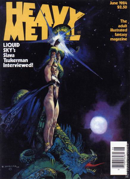 Vol. 8 No. 3 The adult illustrated fantasy magazine. Cover art by Esteban Maroto. Gore Lord article by Charles Platt. Lann, script and art by Frank Thorne. I'm Age, script and art by Jeff Jones (one page). Rock Opera, script and art by Rod Kierkegaard, Jr. The Hunting Party, script by Pierre Christin, art by Enki Bilal. It's a Bird...It's a Plane...It's Tsukerman! article. Salammbo II: Carthage, script and art by Philippe Druillet. The Door of the Transfiguration featuring The Third Incal, script by Alexandro Jodorowsky, art by Jean Giraud (as Moebius). A Matter of Time, script and art by Juan Gimenez. Living in the Ice-Age starring El Borbah, script and art by Charles Burns. The Railways, script by Claude Renard, art by Francois Schuiten. Meets the Toast of Europe starring Tex Arcana, script and art by John Findley. Butterfly, script and art by Herikberto. June, 1984, issue 87. 100 pgs. Cover price $2.50. Cover price $2.50.