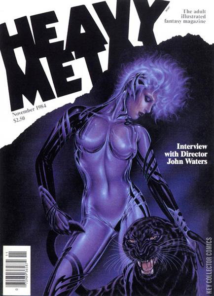 Vol. 8 No. 8 Olivia cover, Bilal, Thorne November 1984, issue 92. Dubbed "The adult illustrated fantasy magazine," Heavy Metal also publishes tales of horror, science fiction, and adventure. Issue 92 includes the following stories: Triton by Daniel Torres; A Second Babel by Joost Swarte; The Great Passage by Jeronaton; The Hunting Party by P. Christin and Enki Bilal; The Walls of Samaris by Schuiten; Lann by Frank Thorne; I'm in Love With an Economist! by Salomon and Nicole Claveloux; and Tex Arcana by John Findley. Includes interview with John Waters. Cover art by Olivia. Cover price $2.50.