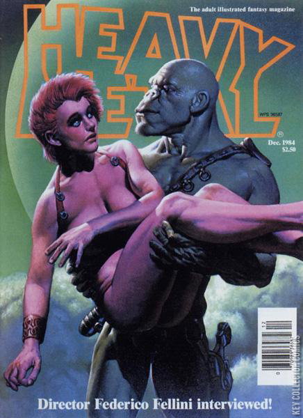 Vol. 8 No. 9 The adult illustrated fantasy magazine. Cover art by Richard Corben. Wordpeckar article by Mike Barson, art by Harvey Pekar. Triton, script and art by Daniel Torres. The Walls of Samaris, script by Benoit Peeters, art by Francois Schuiten. Federico Fellini interview. An Author in Search of Six Characters, script and art by Milo Manara. The Hunting Party, script by Pierre Christin, art by Enki Bilal. Enslaved by the Needle, script and art by Joost Swarte. Enchantment text story, script by Doris Vallejo, art by Boris Vallejo. Meets the Toast of Europe starring Tex Arcana, script and art by John Findley. Rock Opera, script and art by Rod Kierkegaard, Jr. Dec, 1984, issue 93. 100 pgs. Cover price $2.50. Cover price $2.50.
