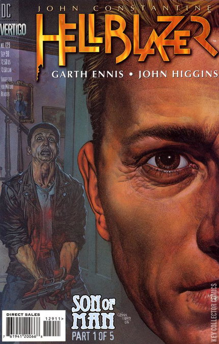 Garth Ennis returns to HELLBLAZER with "Son of Man" part 1! When Chas arrives on John's doorstep begging his help in disposing of a bloody gun, John must trace a path back to a long-forgotten dreadful night and deal with its ungodly consequences.