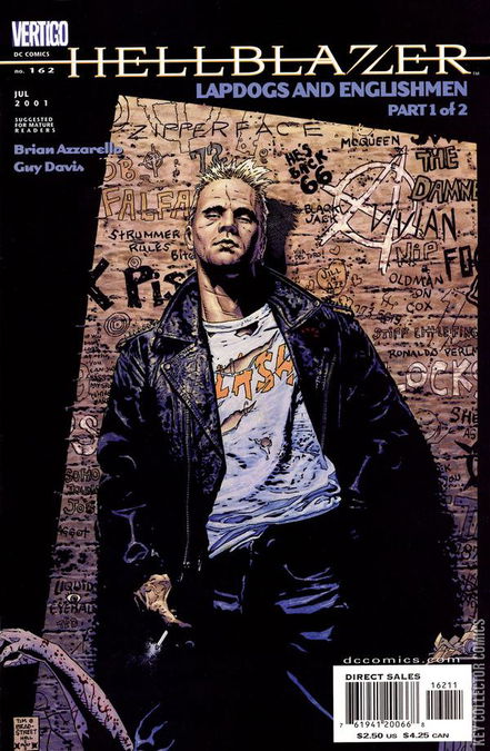 Guest artist Guy Davis (SANDMAN MYSTERY THEATRE) illustrates "Lapdogs and Englishmen." As John Constantine continues his journey across America, he reminisces about his days in the London punk scene as a member of Mucous Membrane. Drunk and on the dole, he and his mate Chas meet an American tourist who may have a mean streak to rival even John's.'Mucous Membrane' band days flashback