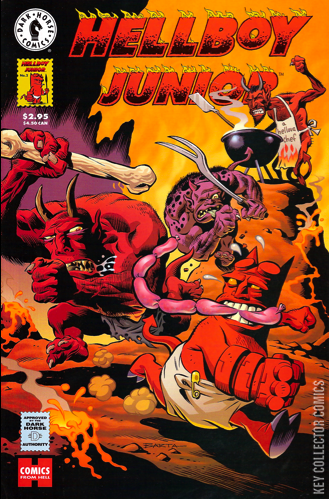 One issue couldn't contain all the wackiness and misadventures of lil' Hellboy and all his weird friends, so here's another helping! Bringing together the diverse talents of Bill Wray, Hilary Barta, and Stephen DeStefano, with the ultimate Hellboy Jr. story by Mike Mignola, this one is a guaranteed knee slapper. Why waste your money on cheap imitation? With this gang of hooligans at the helm, they'll offend everybody!The House of Candy PainStill angry about having to eat maggots, Hellboy Junior and Donnie travel to the Forbidden Forest of Feastible Dwellings to find food. They found a house of meat, but it was being guarded by mob trolls. They found a house of vegetables, but were uninterested. They found a house of candy and while they were eating they discovered that a transvestite witch lived there. They were drugged and imprisoned by the he-witch. Donnie was taken off to be turned into a handsome husband for the witch, and Hellboy Junior was saved for their wedding meal. Donnie talked the witch out of eating him and they only removed his legs to eat. Later that night, Donnie went down to the dungeon to restore Hellboy Junior's legs with a set of frog legs and some of the witch's magic. Hellboy Junior wanted to flee back to hell, but Donnie wouldn't forsake his sacred vows to the man-witch. As a side-effect of the spell Hellboy Junior began to grow, and ate the candy house as well as its inhabitants.Sparky BearThe government did something to Sparky to make him the ideal spokesperson for forest fire prevention. Sparky lived amongst the humans and kept the other bears in line. The other bears considered him "the man" and would no longer hang out with him. Sparky found a human woman. The government forced him to keep the marriage a secret, and eventually his wife left him. She went on tour and wrote a book about Sparky. After being forbidden to see a human woman again Sparky lost it, preventing forest fires with deadly force. The rangers and other bears attempted to...