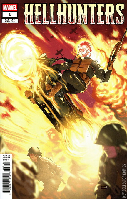 GHOST RIDER '44! 1944: As U.S. Sergeant Sal Romero is parachuting into Nazi-occupied Europe, young Nazi officer Felix Bruckner becomes the host for an unspeakable evil. In the aftermath of their violent meeting, Romero is reborn as GHOST RIDER '44, who sets out not only to take revenge on Bruckner and the Nazis, but to save mankind from annihilation! Featuring an ALL-STAR CAST of Marvel's most badass heroes, don't miss the origin of the INCREDIBLE HULK's GHOST RIDER '44! PARENTAL ADVISORY