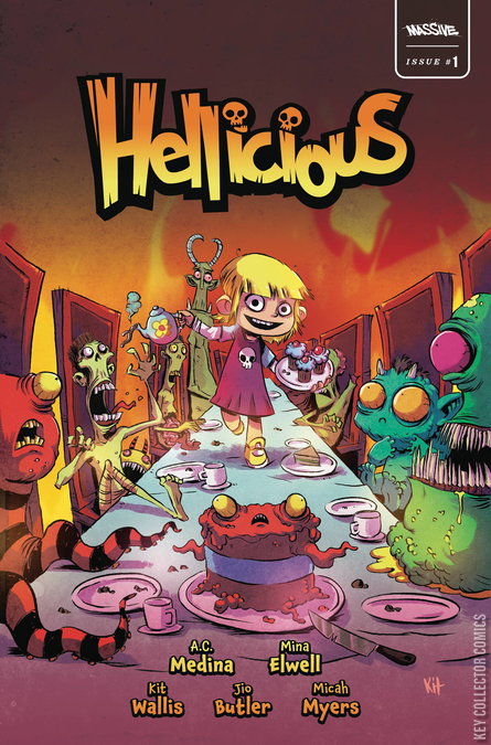 Everyone deserves a second chance right? Get this limited print run foil logo '2nd chance' printing of Series artist Kit Wallis' infamous Hellicious #1 cover Meet Cherry, the Devil's prankster granddaughter and the cutest grim reaper in Hell. She loves everything about her home - its burning landscapes, its horrific inhabitants, and especially her demonic family - but she's lonely. She might look like a little girl, but she's much too powerful for the imps and the damned inhabitants of the underworld. There's only one soul who Cherry thinks might be a good playmate - Satan-worshipping death metal frontman Briggy Bundy. The bad news is, he isn't dead...Yet. But Cherry won't let a little thing like that keep them apart... and all Hell breaks loose when Cherry defies the order of the afterlife to finally have the best friend she's always wanted.