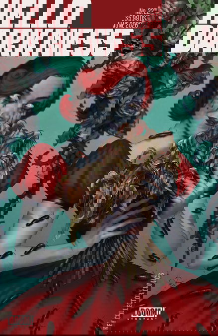 The temperature rises and so does the body count, as Hello Darkness returns for another summer slashing!A bride’s devoted faith is tested when she’s caught in an endless time loop–will murder be the only way to achieve salvation? Repent, reader, with “Sunday Pt. I” from Eisner and Harvey Award–winning writer Ryan North and artist Giada Belviso!A lone cowboy looking for a payday finds instead a book filled with endless waking nightmares in "The Written Word" by John Arcudi and superstar artist Ryan Sook.Saddle up your hog and roar into “The Boils” by Aaron Losty and Lauren Knight as a revenge killing by a leather daddy and his biker gang comes back to haunt them in every way possible!Finally, try to hold onto your lunch for “Be A Man” by Derick Jones, as a father/son hunting trip becomes a lesson in manhood that’s sure to turn your stomach…