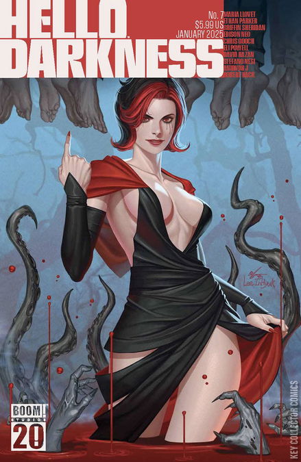 Ahh, the sweet scent of love! Does your beloved prefer the putrid stench of corpse flowers or the warm, metallic aroma of flowers made of corpses? Either way, Hello Darkness is the perfect compliment to a bouquet and a heart-shaped box full of still-beating hearts with special stories of romance! But that's not all, we're also kicking off the year with a BOOM! in the final installment of Garth Ennis and Becky Cloonan's 'The War', more madness in Robert Hack's 'I Can't Take You Anywhere', and much more!