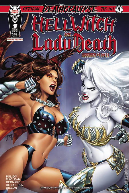 "Deathocalypse," an official year-long company-wide event, climaxes here! Round one went to Lady Death after she dropped Hellwitch into a vat of flesh-eating toxic waste. Round two went to Hellwitch, who savagely stabbed Lady Death's eye. Now, bear witness to their outrageously brutal third and final round set in Sin City itself, Las Vegas! For months, Hellwitch weaved a twisted plot to first seduce Lady Death with forbidden lust and then snare her into a lethal confrontation. But her carefully-crafted scheme devolves into an orgy of bone-shattering violence and neither of these warrior women will ever be the same. Who will reign supreme in one of the most savage, action-packed slugfests in comic book history?
