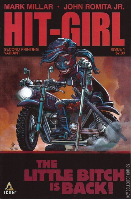 From Marvel Comics. Hit-Girl spins off into her own blood-soaked series by the sales-busting creative team of Mark Millar and John Romita Jr. This story takes place between Kick-Ass Volumes 1 and 2 as Mindy McCready tries to settle into life as a regular school-girl, but wants nothing more than to be dispensing hot justice to the scum of New York City. Her mother and step-father think she's doing her homework, but in reality she's taken Kick-Ass on as her sidekick and is training him up to punch, shoot and stab ... just like Daddy would have wanted.