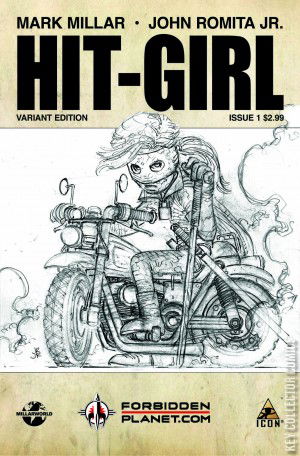 From Marvel Comics. Hit-Girl spins off into her own blood-soaked series by the sales-busting creative team of Mark Millar and John Romita Jr. This story takes place between Kick-Ass Volumes 1 and 2 as Mindy McCready tries to settle into life as a regular school-girl, but wants nothing more than to be dispensing hot justice to the scum of New York City. Her mother and step-father think she's doing her homework, but in reality she's taken Kick-Ass on as her sidekick and is training him up to punch, shoot and stab ... just like Daddy would have wanted.