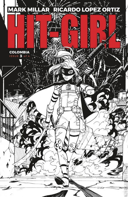 HIT-GIRL IS BACK, and the body count is rising. Our violent adolescent superhero is slaughtering the city's bad guys, using a top hitman as her weapon. Yet, amid the blood, the gang fights, and assassinations, there is a grieving mother desperate for vengeance—a mother that will stop at nothing to get justice for her son. MARK MILLAR and RICARDO LOPEZ ORTIZ join forces for the third installment of Mindy's Colombian adventure.