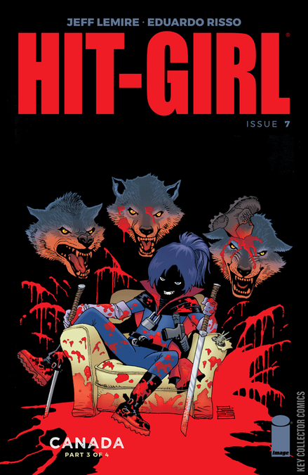 Written by JEFF LEMIRE, a 2018 Eisner Award nominee for Best Writer! Hit-Girl’s holed up in a cabin in the woods, nursing bear-trap wounds and recovering from a fall through the ice. But Billy Baker and his gang have found her hideout, and these local hunters can track anything in the snow. How many can Hit-Girl slay before the Mounties show up?