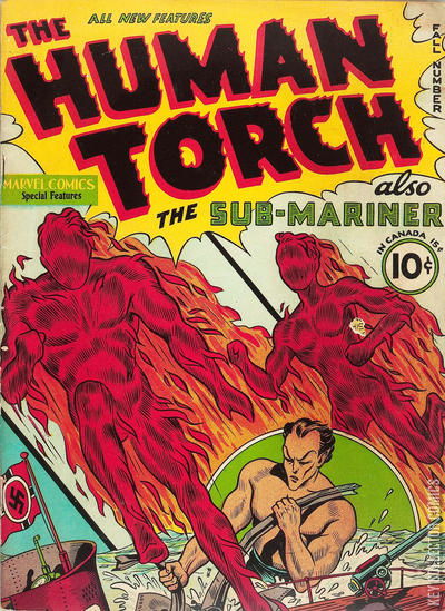 A collection of comics and stories, including -- "Introducing Toro, the Flaming Torch Kid" , featuring the Human Torch : Passing by a traveling circus, Torch spots a young kid on the ground with his body aflame. Landing, and a bit puzzled, he helps the young boy named Toro to be able to flame on at will and fly. Toro relates how he was involved in a train accident and lost both his parents after trying to save them in the fire. He fell unconscious, holding a piece of molten metal in his hand. He was adopted by two circus performers and has been with the circus since. Meanwhile, Samson, who lost a fight earlier to the Torch, is planning his revenge against the circus and especially the Torch. -- "Sub-Mariner Crashes New York Again!!!" , featuring the Sub-Mariner : The Navy has lost four battleships to fifth columnists, so the Sub-Mariner decides to head that way and look over the situation. He discovers a submerged Nazi U-Boat and some suspicious men diving down to it. Fearing sabotage, Namor decides to be on hand for the christening of a new ship the next day. As the ship slides into the water and starts to sink, aerial subs show up, anchor discs to the ship, raise it out of the water and put in back in dry dock. In a letter to officials, Namor tells them the ship was sabotaged, that he knows where the saboteurs are and will take care of them himself. -- "Exortion for a Bail-Out" , featuring the Falcon : Carl Burgess runs into a Mrs. Bankhead on his way out of court and learns that her husband has been kidnapped by men demanding $50,000. Changing to the Falcon, he tracks down the kidnappers and learns that they were trying to get the extortion money to bail out their boss, Big Jim Peterson, whom Burgess (as Assistant D.A.) was attempting to prosecute. -- Plus : The Fiery Mask, Microman, and Mantor the Magician!!