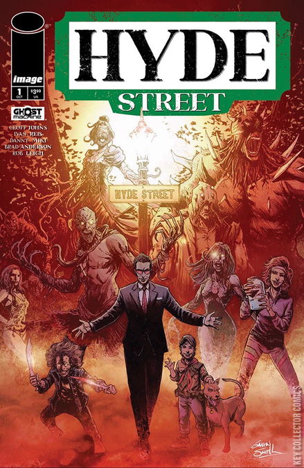 SERIES PREMIEREA new epic era in character-centered horror begins as GHOST MACHINE launches HYDE STREET, its newest ongoing series from creators GEOFF JOHNS and IVAN REIS (Blackest Night, Green Lantern, Aquaman)!In every city and town, off every country road and metropolis avenue, if you make a wrong turn…you might find yourself on Hyde Street. But be careful who you talk to and what you do because the consequences make death itself seem like the easy way out. Introducing MR. X-RAY! PRANKY, THE WORLD’S MOST DANGEROUS SCOUT! MISS GOODBODY! AND MANY MORE…out to delight, fright, and say good night. What is their secret and that of Hyde Street? Only they know. For now.