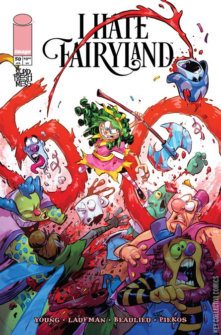 It's an issue ten years in the making... That's right, muffin fluffers: I HATE FAIRYLAND is hitting the monumental milestone Issue #50! Join Skottie Young, Derek Laufman, the IHF team and a roster of the best cover artists in the industry for a celebration of all things Gert, and a tantalizing tease at the NEXT ten years of our cutesy green-haired psycho's adventures in Fairyland…
